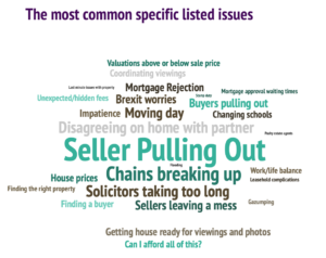 Some of the biggest stressors and pain points recorded were the threat of a vendor pulling out, a chain breaking at the last minute, solicitors taking ages, and even disagreements with a partner over various things.